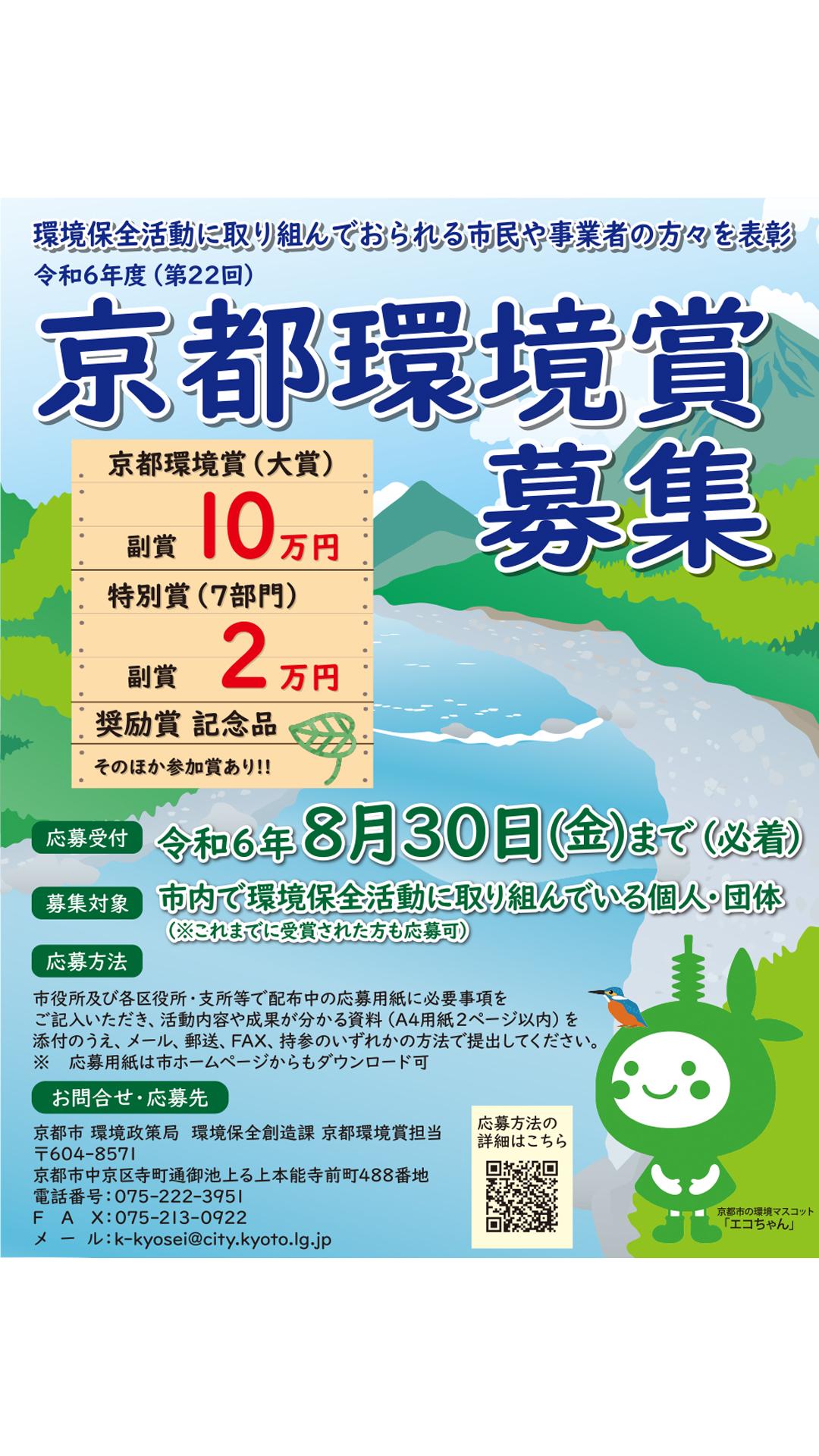 また、令和6年度の「京都環境賞」の募集は8月30日まで。皆様の御応募お待ちしています。 - 申込み方法