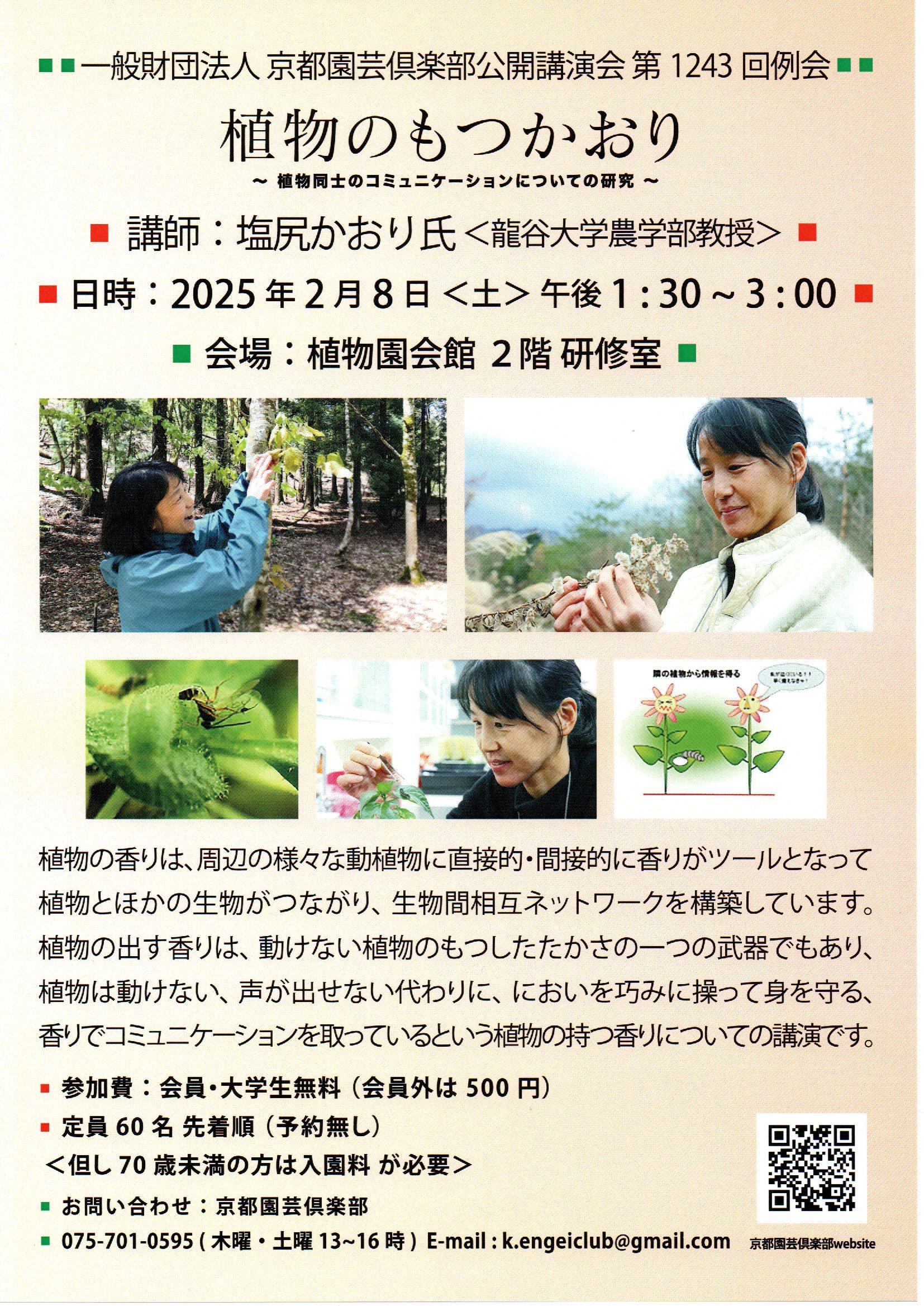 公開講演会 第1243回例会「植物のもつかおり~植物同士のコミュニケーションについての研究~」
