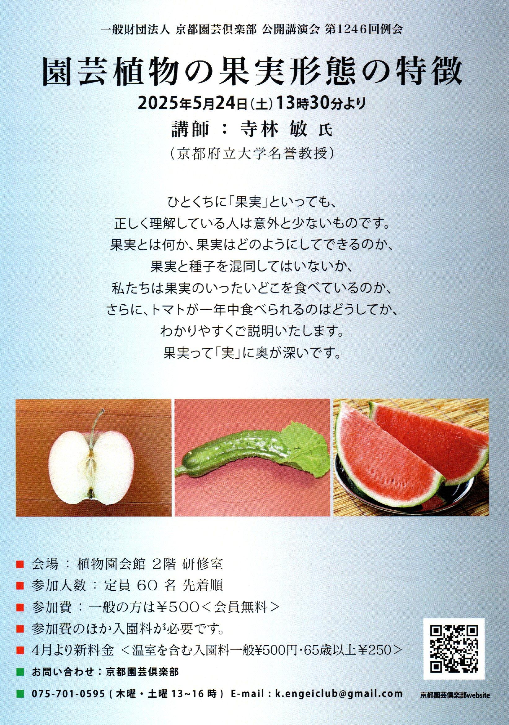 公開講演会 第1246回例会「園芸植物の果実形態の特徴」