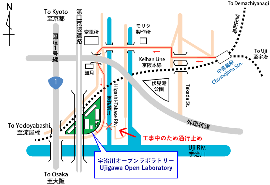 - 京都大学防災研究所宇治川オープンラボラトリー 中庭(京都市伏見区横大路下三栖東ノ口 京阪電車「 中書島 」より徒歩15~20分 駐車場あり)