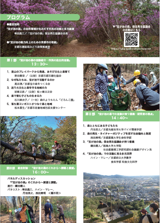 13:30 第Ⅰ部 「宝が池の森の活動紹介―市民の自主的活動」