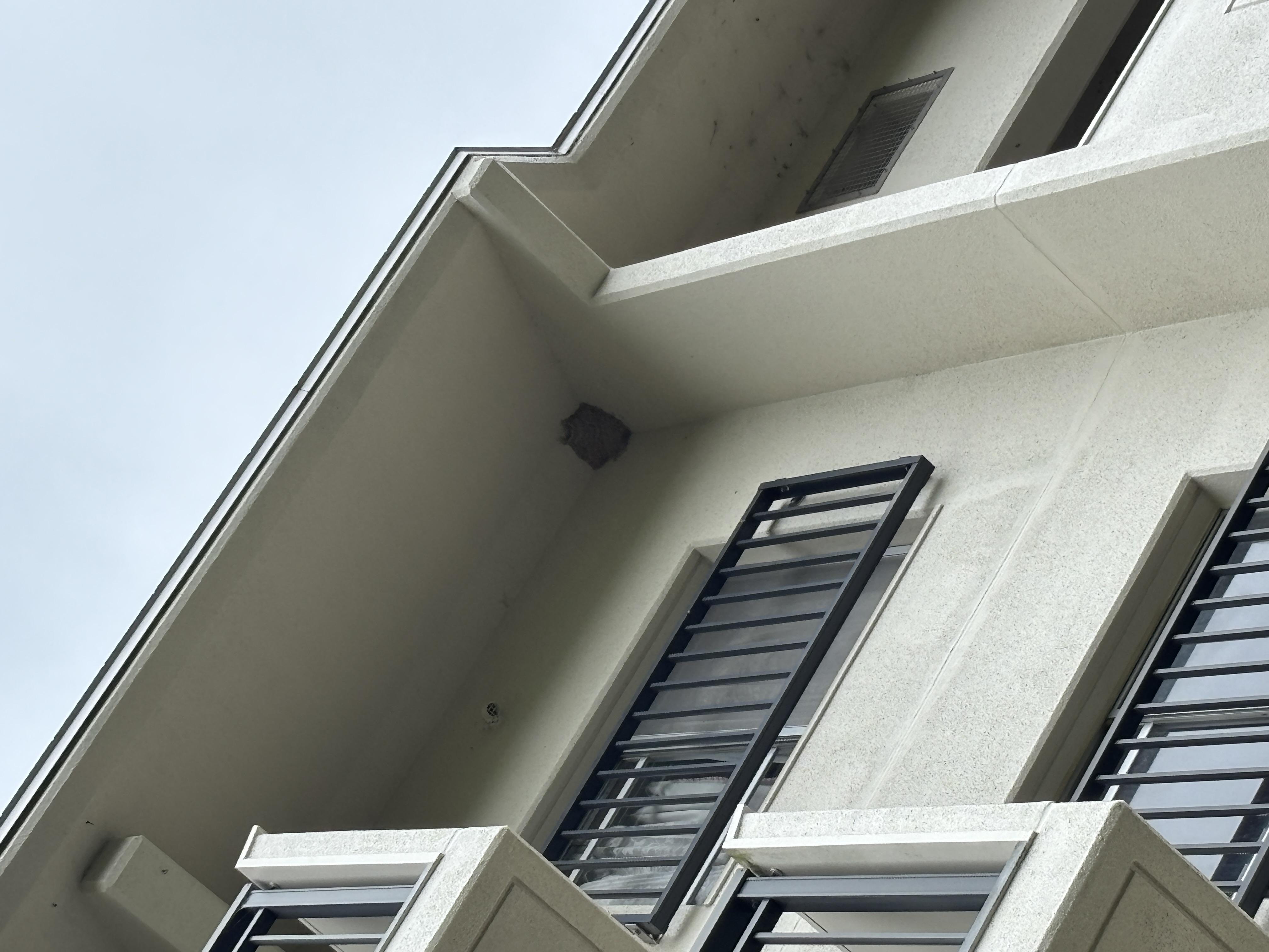 ツバメが数羽飛んでいて、行き先を見ていると、市営住宅にツバメの巣が見られた。