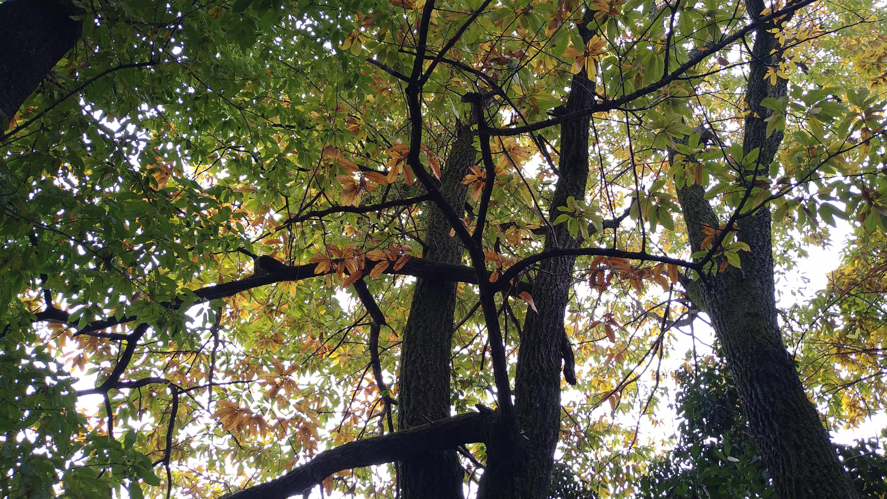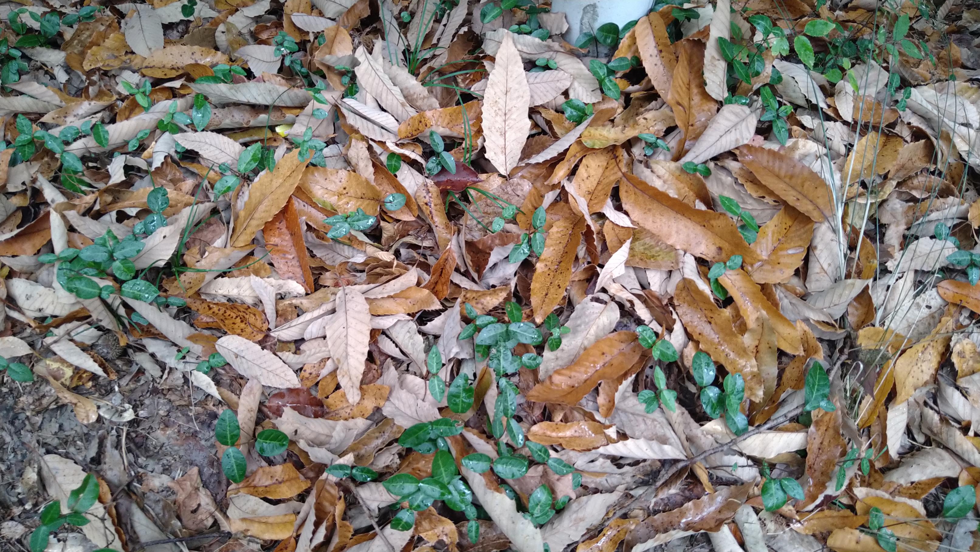 枝についた葉の裏は緑色で白くない気がするが、一方で落ち葉の裏は白い。