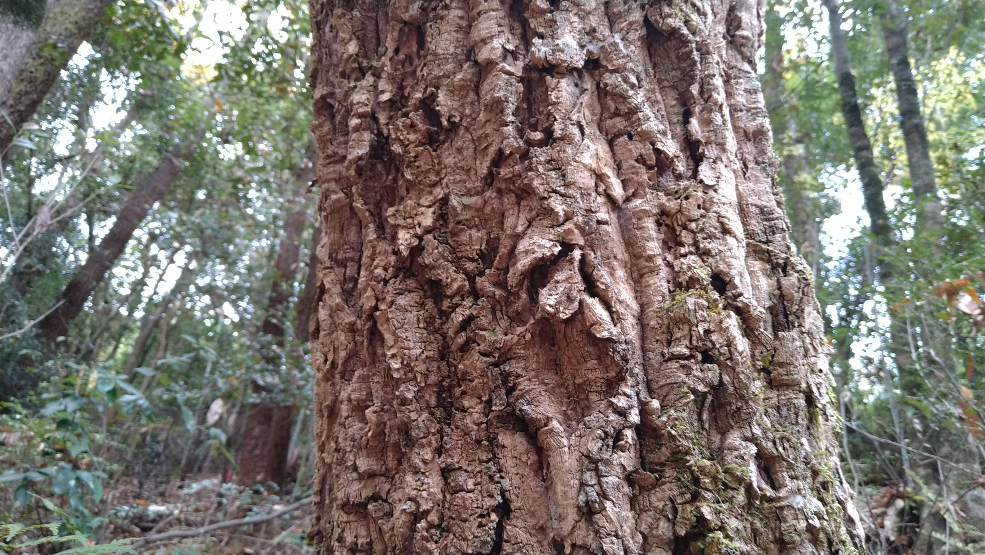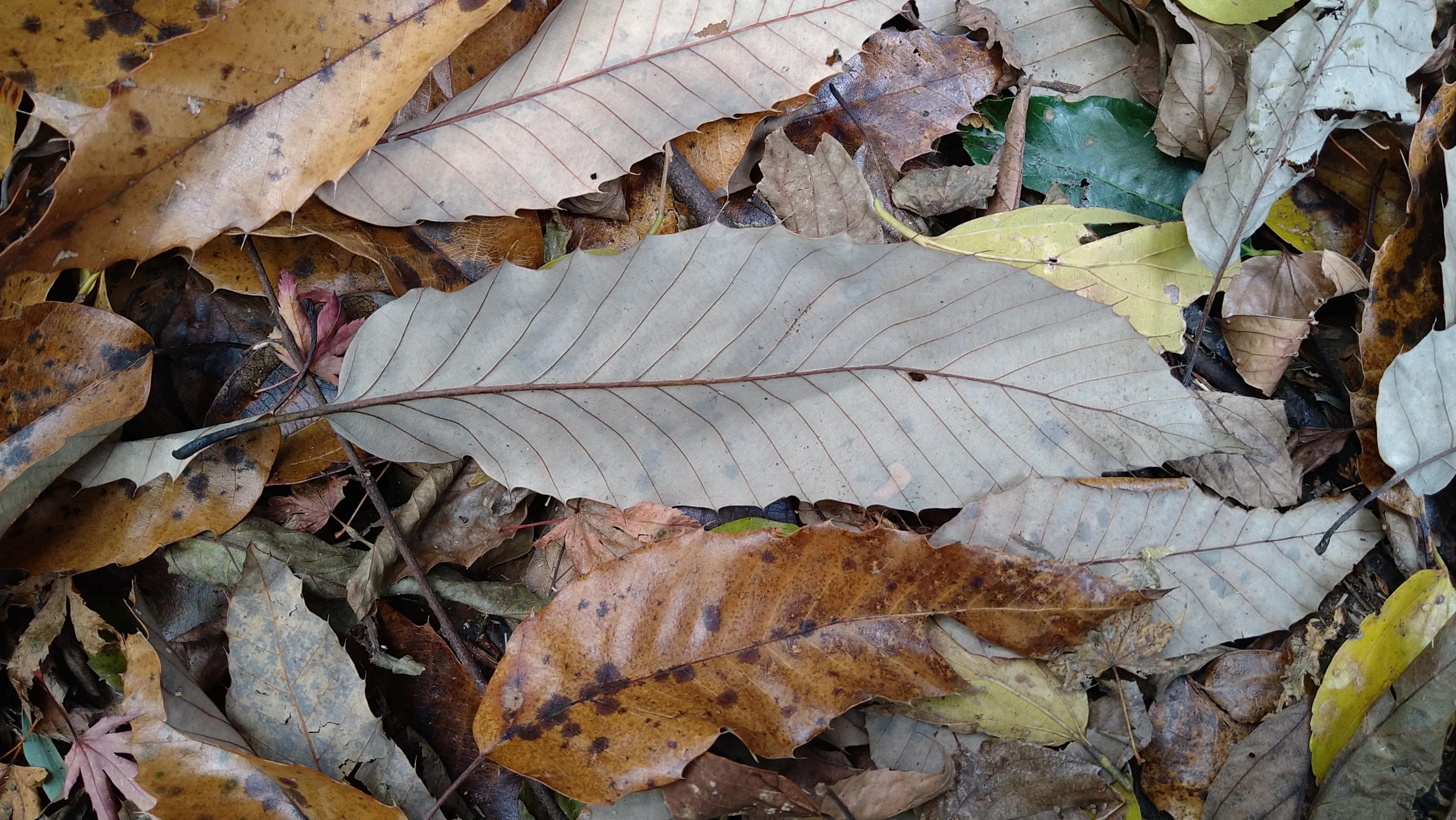 お掃除されたかイノシシがもう食べちゃったのか、どんぐりを見つけられなかったので黄葉狩りへ変更。3枚目の写真の樹皮を押してみるとフッワフワだったので、これはアベマキ。
