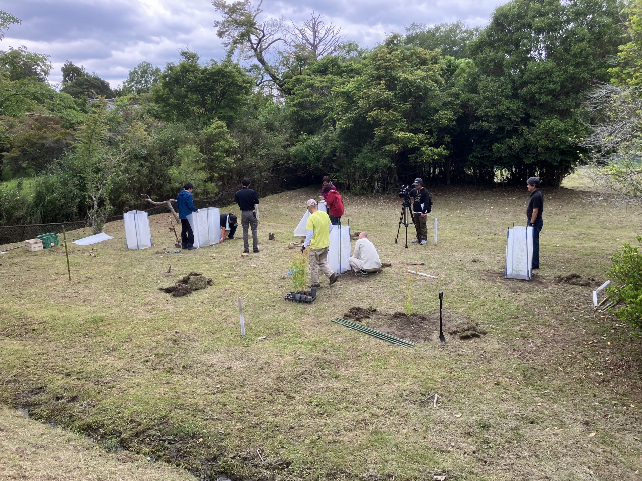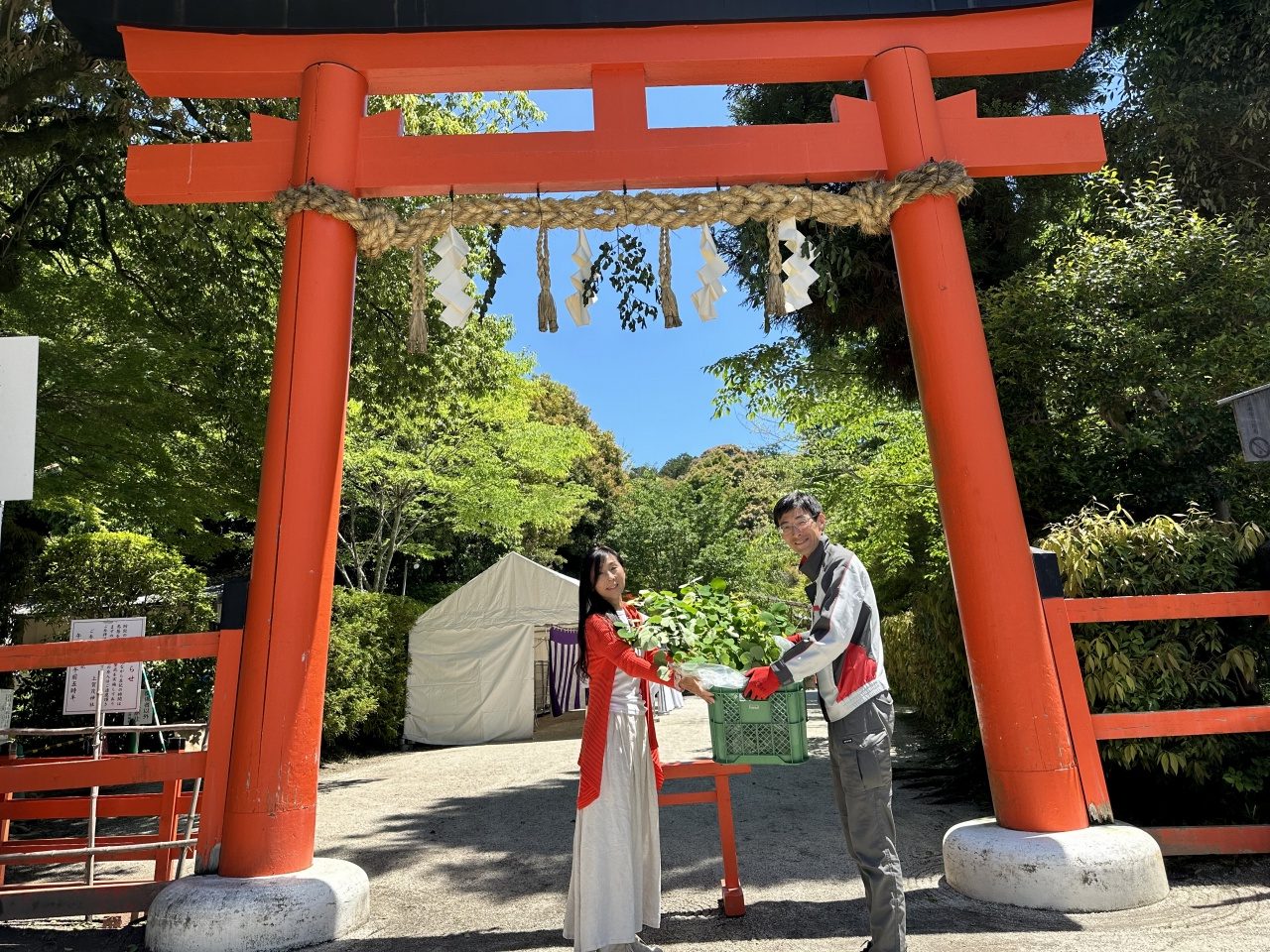 上賀茂神社の葵祭に使用されるカツラの枝葉が減少傾向にあり、安定的な供給が難しくなりつつあるため、武田薬品工業株式会社 京都薬用植物園では、一般財団法人葵プロジェクトを通じ、同園内で栽培しているカツラを令和5年から毎年奉納しています。また、令和7年には、同園内の休耕地を活用し、市民が継続的に保全に参加できるプロジェクトの一環として、「市民の庭」イベントを開催し、地域性種苗のカツラ※の植樹を実施しました。