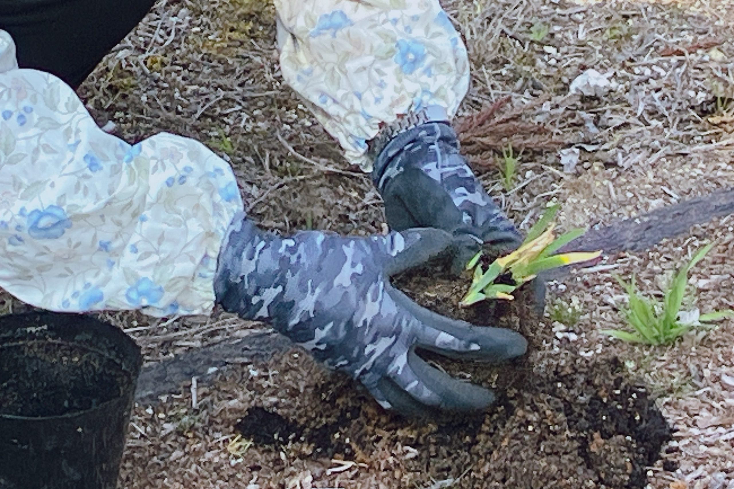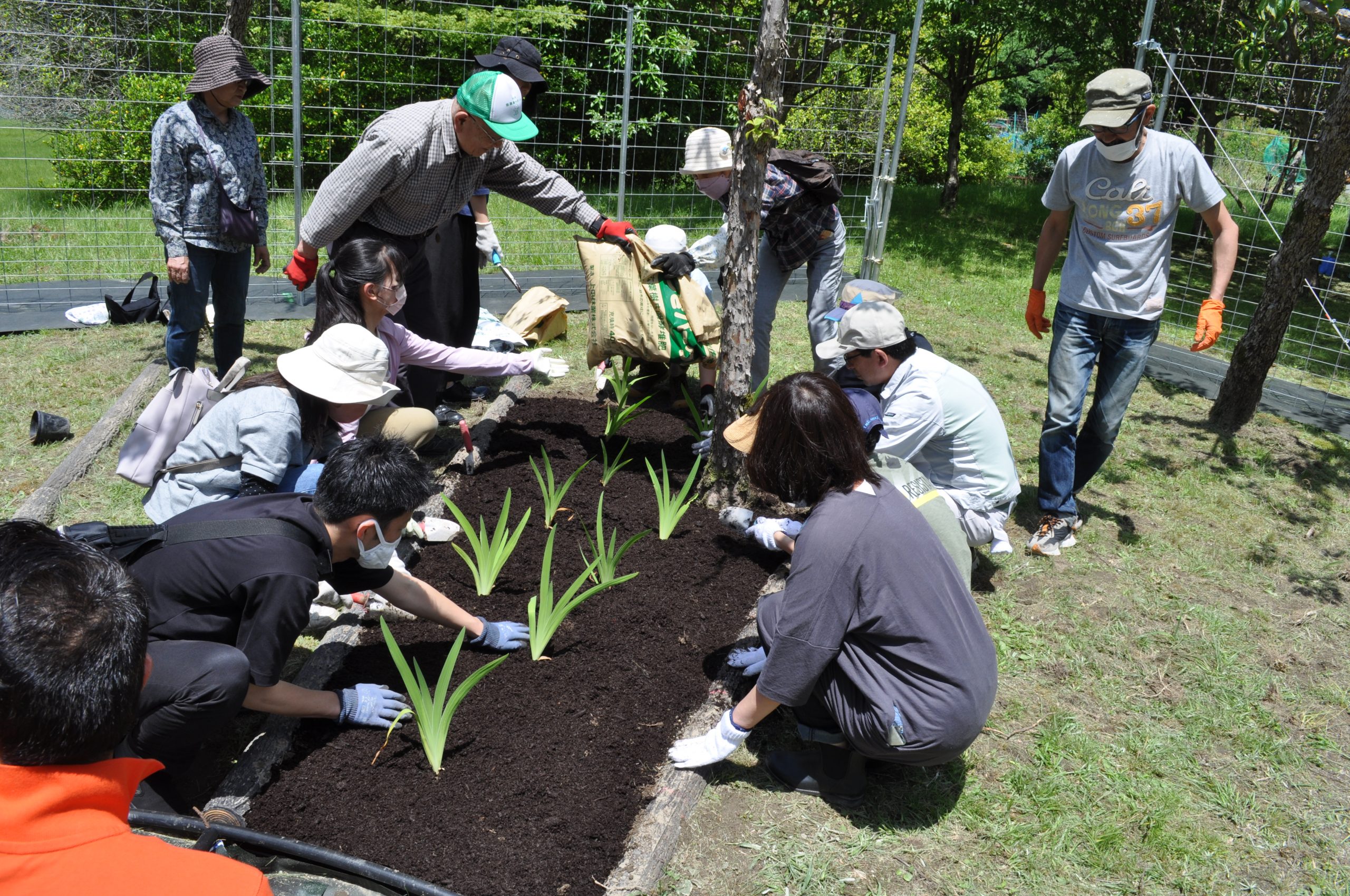 前年度実施した育成講習会にてお預かりいただき、自宅で育成されたヒオウギを「市民の庭」に植え戻す「里帰り」イベントを実施しました。